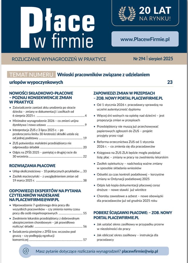 Najlepsze wsparcie dla specjalistów ds. kadr i płac oraz księgowych - portal, poradnia i magazyn w jednym!