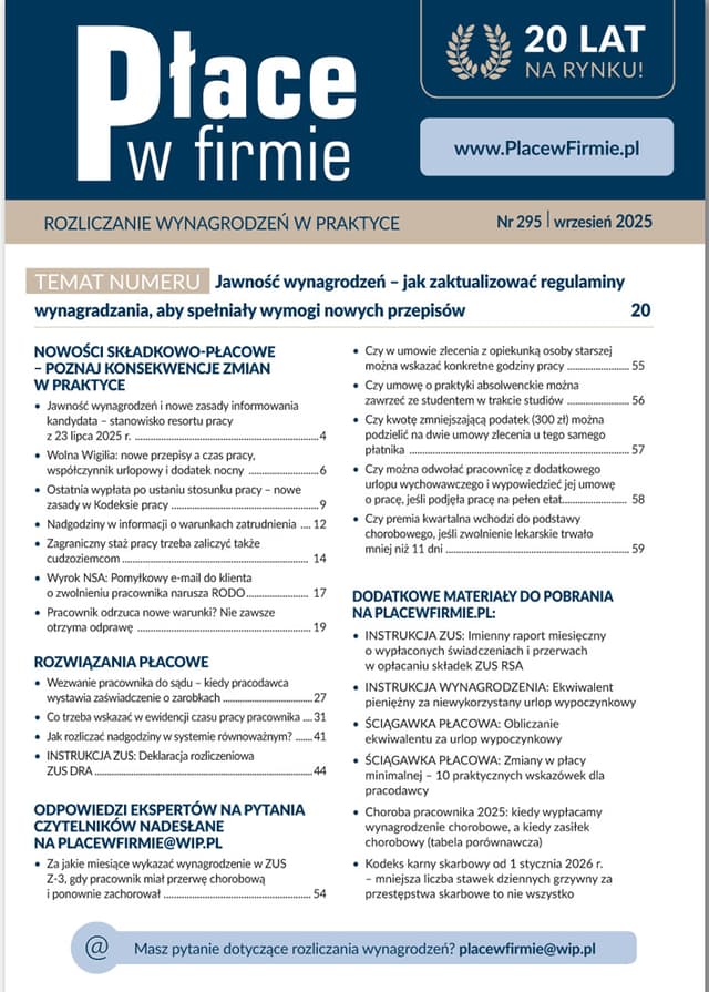 Najlepsze wsparcie dla specjalistów ds. kadr i płac oraz księgowych - portal, poradnia i magazyn w jednym!
