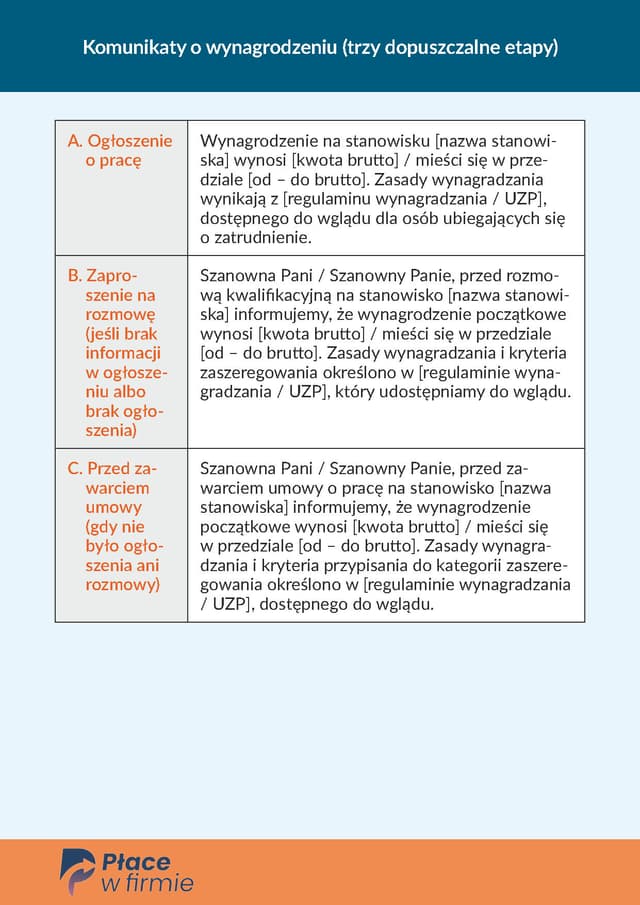 Komunikaty o wynagrodzeniu (trzy dopuszczalne etapy)